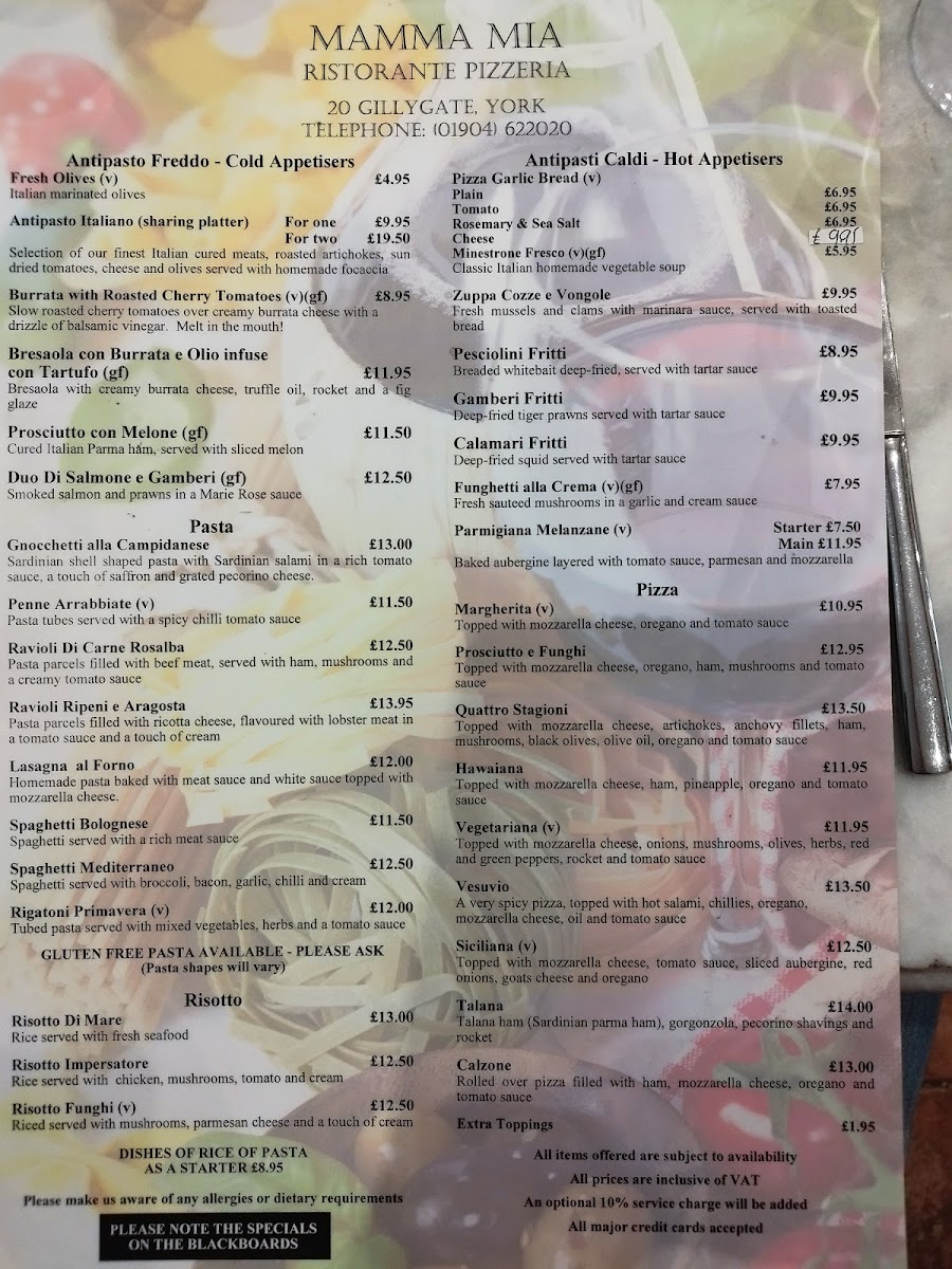 Mamma Mia York YO31 7EQ Menu (2025 Update)